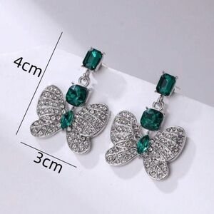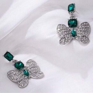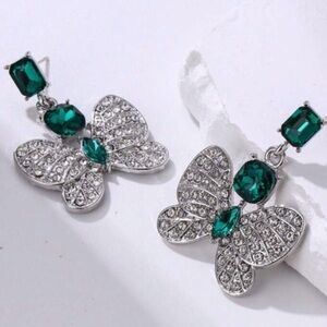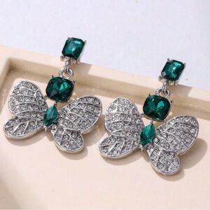 Glam Luxe Butterfly Emerald Rhinestone Drop Statement Earrings
