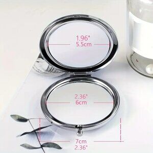 This compact mirror blends sparkle and charm with its rhinestone design and makeup-themed accents. It opens to a regular mirror and a 2x magnified side, giving you a clear view for quick touch-ups in a slim, purse-friendly size.