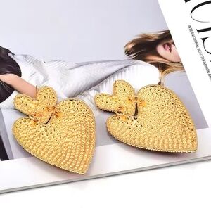 Turn heads with these bold and glamorous heart-shaped earrings! Featuring a double-heart design encrusted with shimmering rhinestones, these gold-tone beauties add instant sparkle and style to any outfit — from casual chic to night-out glam.