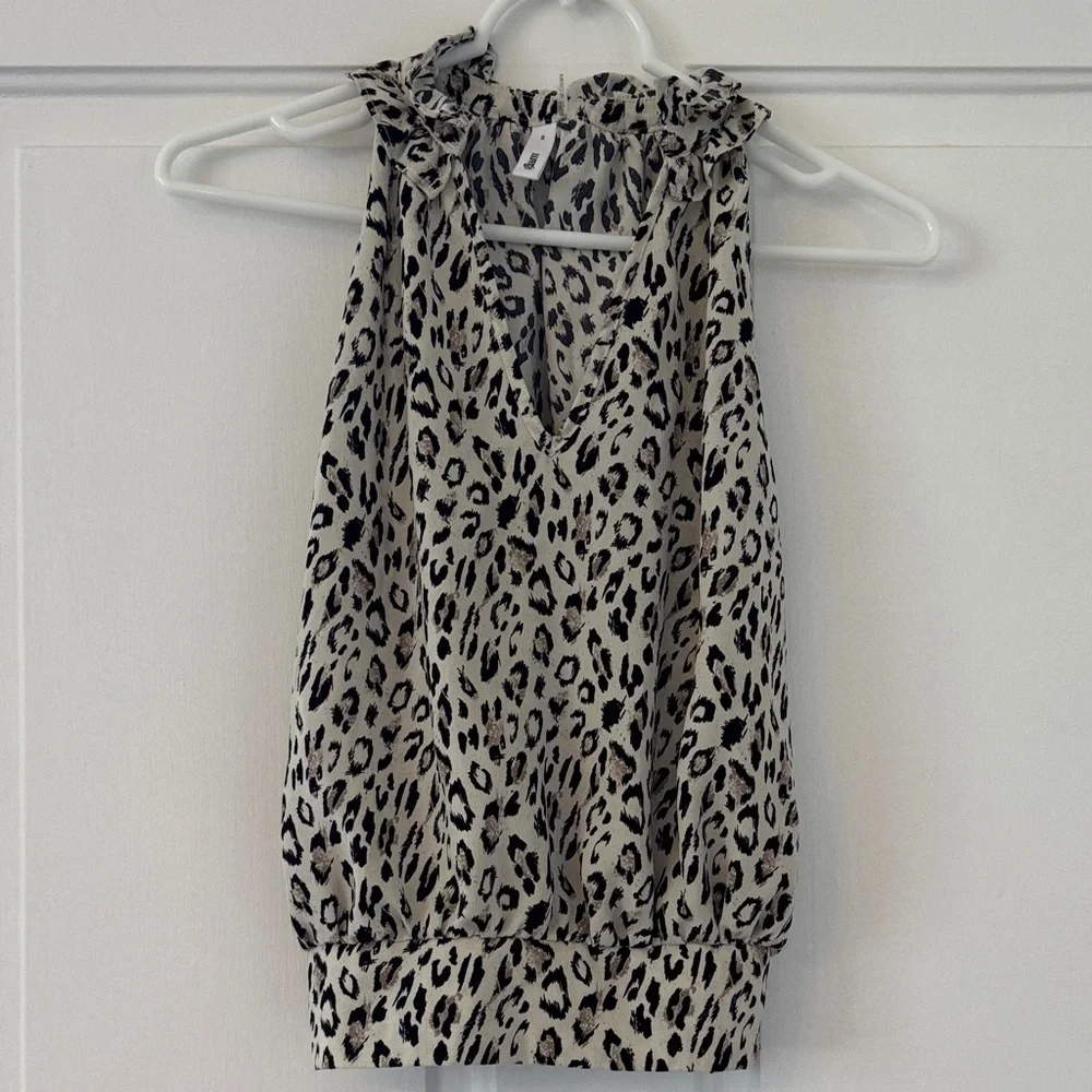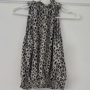 Glam animal print tank with ruffle neckline in a Ladies size small.