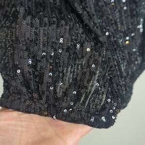 Glam Semi-Sheer Off The Shoulder Sequined Top Dramatic Sleeves Women's M