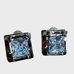 These are a square diamond-like stone with silver toned 3 dimensional metal.