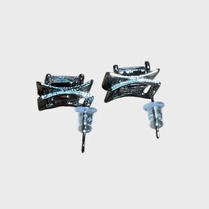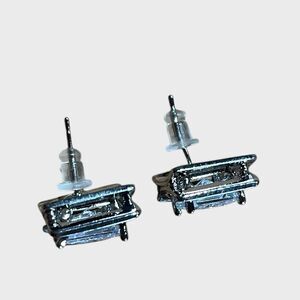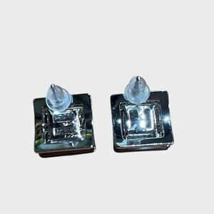 Square Costume Jewelry Earrings Silver Diamond 3 Dimensional NEW