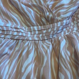 Chic zebra print dress with a flattering fit. Features a unique pattern in pink and white.