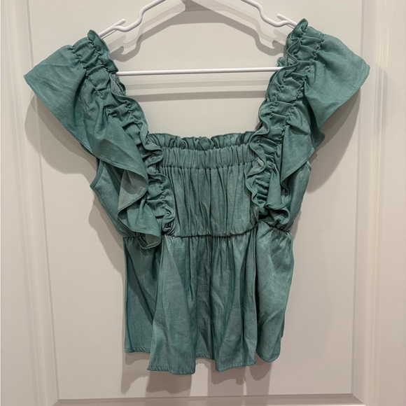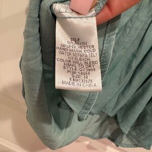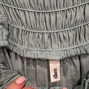 Chic ruffle design. Elastic neckline and waist. Perfect for casual outings.