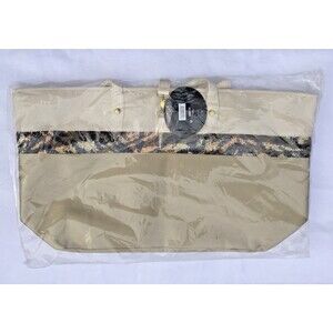 Glam Tote Bag Tan & Gold Double Handles & Shoulder Strap Zip Shut Slide Pockets