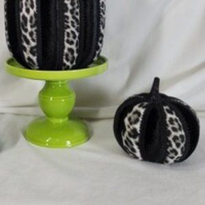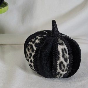 Glam Velvet Pumpkins, Decorative Black & Leopard with Black Trim Pumpkin