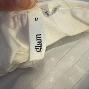 Glam White Hi Low Angel Sleeve Top Lined Body Sheer Arms Flowy Style Medium
