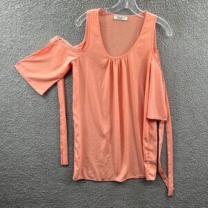 Glam Womens Top Small Peach 100% Polyester Pullover Cold Shoulder Sleeve Shirt