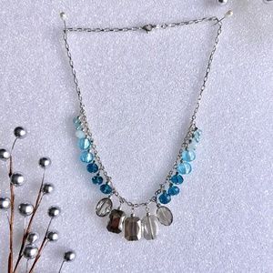 Glamorous teal blue and smoky quartz grey faceted glass bead necklaces. This is 2 necklaces for 1! Wear both together or separate. Total length is close to 20” plus the stones.