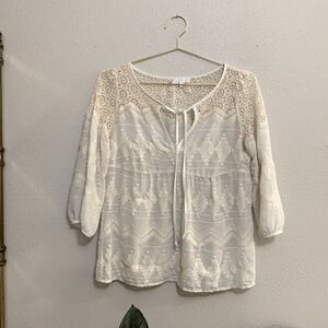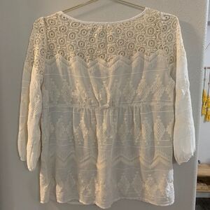 Measurements: 19” chest (measured flat), 25” length (shoulder to hem), 3/4 sleeve