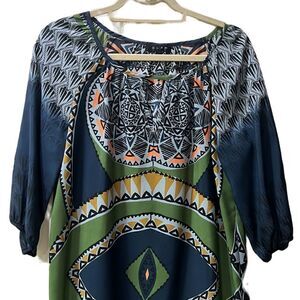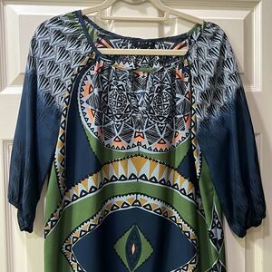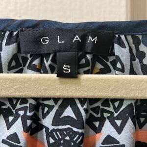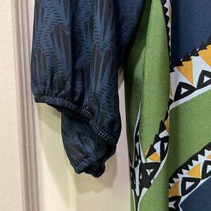 Glam Women’s Small Keyhole Abstract Navy & Mustard Yellow Lightweight Dress