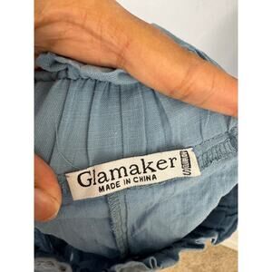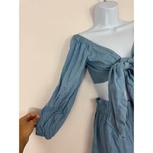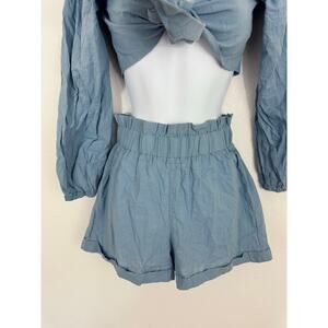 Glamaker Blue Cotton 2 Piece Set | Tie Front Crop Top & High Waist Shorts Small