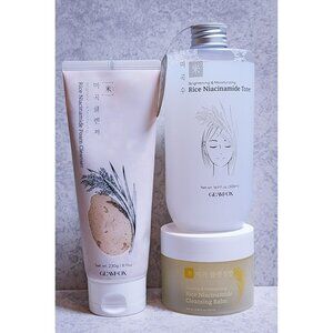 Transform your skincare routine with this Glamfox Rice Niacinamide set. Infused with locally grown Korean rice and niacinamide, it cleanses, brightens, and moisturizes, leaving your skin radiant and hydrated. A perfect trio for an effective daily skincare ritual. Elevate your skincare game with these gentle yet powerful formulas.