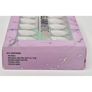 Glamnetic Reusable Press-On Nails Angel Short Almond White NEW 24 Nails