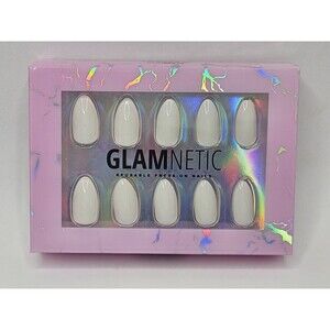 Glamnetic Reusable Press-On Nails Angel Short Almond White NEW.