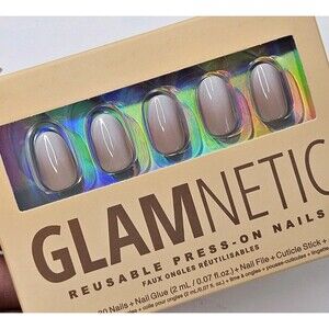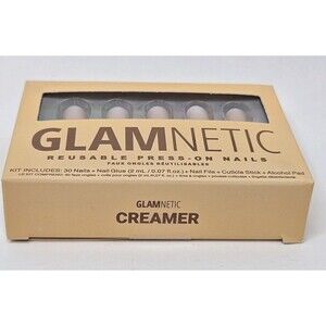 Glamnetic Reusable Press-On Nails Creamer Short Round 30 Nail Kit New W/ Glue