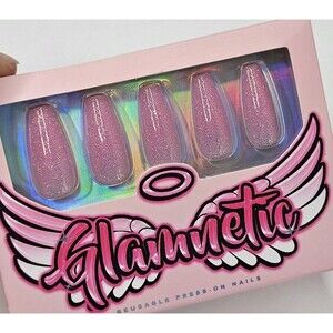Glamnetic Reusable Press-On Nails juicy Coffin pink 30 Nail Kit New