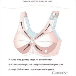 Glamorise 1265 Magic Lift Bra 58B Posture Back Wirefree Front Closure White
