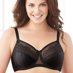 Glamorise 34D WONDERWIRE Bra Satin & Lace UNDERWIRE (FLEXI SIDE BONES) Black NEW