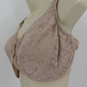 Glamorise 38F Bra WonderWire Front Closure Beige Flower Lace Underwire Unlined