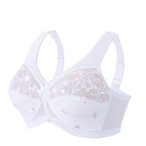 Glamorise 40H MAGIC LIFT Bra (WIDE-STRAPS) Wireless SOFT-CUP (WHITE-FLORAL) NEW