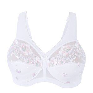Glamorise 48DD MAGIC LIFT Bra (WIDE-STRAPS) Wireless SOFT-CUP (WHITE-FLORAL) NEW