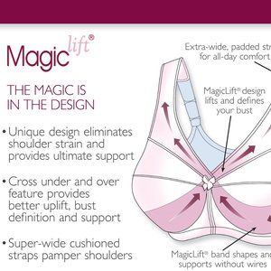 Unique cushioned inner-bust band with cross under and over is built-in for uplift, separation, support and comfort.