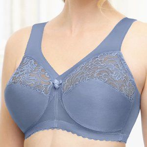 Glamorise 48i MAGIC LIFT Support Bra LACE~CUPS & WIDE~COMFORT~STRAPS Blue NEW