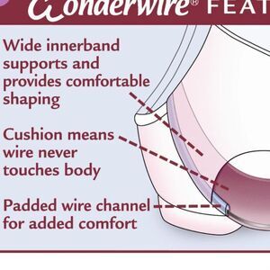 ••Wonderwire® design with a unique cushioned comfort band and a wire that never touches the body