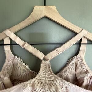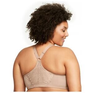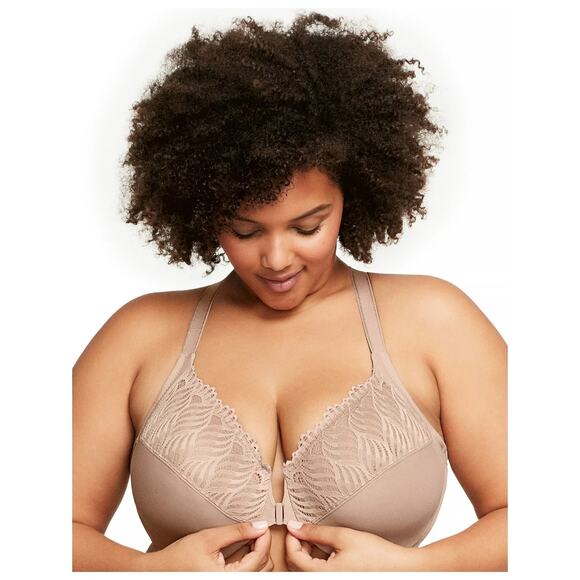 Glamorise Wonderwire Front Closure T Back Bra Cafe Size 34G Nude Tan Cream Lace
