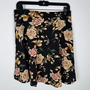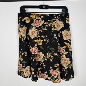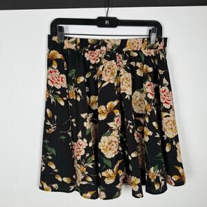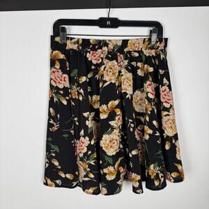 Glamorous Black Floral Print Mini Skirt Size Medium Roses Elastic Back