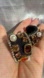 Glamorous Black & Gold Wide Cuff earrings with Emerald Crystals and Pearls