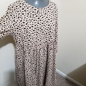 Nude dress with black print make this super comfy stretchy dress fabulous! Pair with/without some tights and booties or a pair of sneakers!
