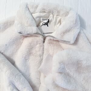 Glamorous Cream Faux Fur Oversized Bomber Jacket Women’s SMALL $239 MSRP