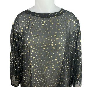 Glamorous Curve Black Gold Star Chiffon Sheer Long Sleeve Cover Up Blouse Top 20