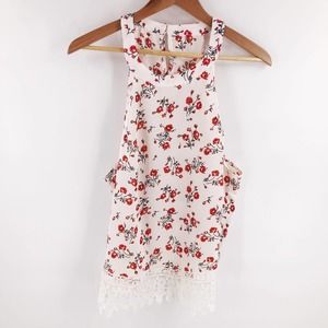 Glamorous Curve Floral Cream Red Halter Neck Tank Top Womens Size 18 NWT $179