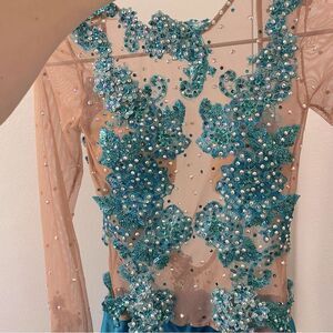 Glamorous Custom solo dance costume dress lyrical teal rhinestone embellish XSA