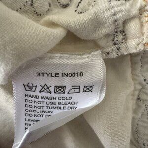 This is a Glamorous fairy-inspired crop top, made of 100% cotton knit fabric. It features embroidered accents, a crew neckline and a button closure. The top has a split open back and a vintage look. It is a size small and requires hand wash only. Perfect for a glamorous or fairy-themed festival outfit.
