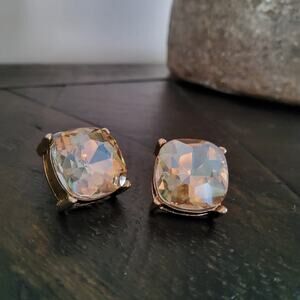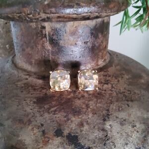 Beautiful gold tone glass cushion cut champagne post stud earrings!