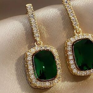 Glamorous Prom Faux Gold & Emerald Diamond Drop Earrings Statement Earrings