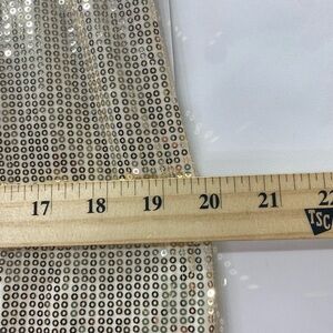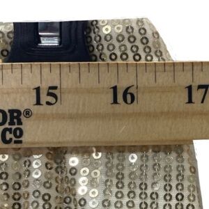 Dazzling gold sequins Straight midi/knee length skirt Front 7" slit and back zipper closure Versatile piece Transition day glam occasions to nighttime clubbing or parties