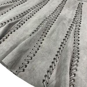 Glamorous Gray Faux Suede Whipstitch Mini Flare Skirt, M