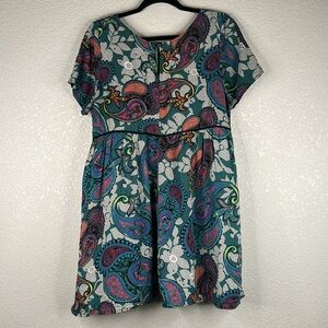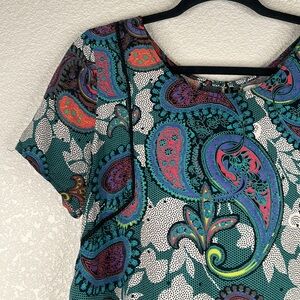Glamorous Green Paisley Summer Vacation Short Sleeve Flowy Boho Dress Size Large