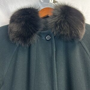 J. Percy for Marvin Richards 100% Lambswool Long Black Winter Coat Fur Collar