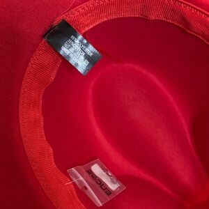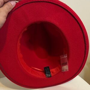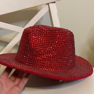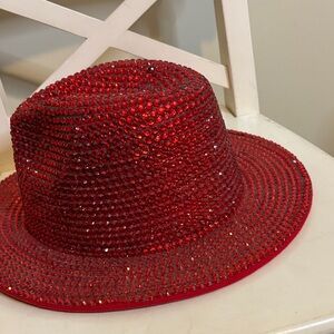 Elevate your style with this glamorous red rhinestone fedora. Perfect for adding a touch of sparkle to any outfit.