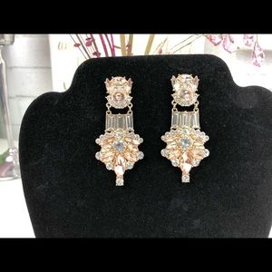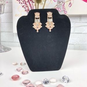 Glamorous boutique costume earrings that will make you feel like a princess. These gorgeous earrings are not heavy and can be jazzed up or down depending on your mood. :-) The color is peachy pink and clear rhinestones.