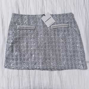 Glamorous Silver Tweed Sequin Mini Skirt Women’s LARGE. Holiday. NWT. $89 MSRP