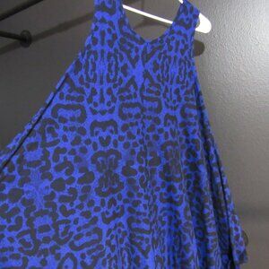 Beautiful medium blue and black leopard print swing/shift dress. The Glamorous brand is headquartered in Manchester, England. Dress has a SharkBite hem. Very soft and comfortable. No visible flaws.