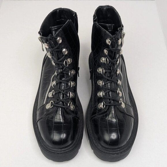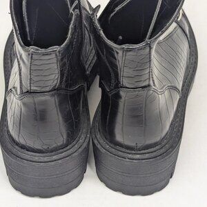 Glamorous Wide Fit Sz 7 Black Chunky Chelsea Boots Croc Print, Zip & Lace-up